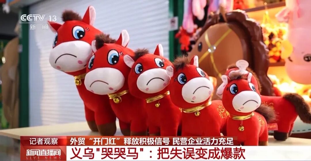 第二个是民营企业应对外贸形势的高度市场敏感性和灵活应变能力。浙江义乌的“哭哭马”原本是缝反了嘴角的瑕疵品,被网友发现后意外走红。商家立刻放弃返工、全线转产“哭哭马”,把“失误”变成“爆款”。在国内爆火之后,南非、中东、欧美等海外订单接踵而至。