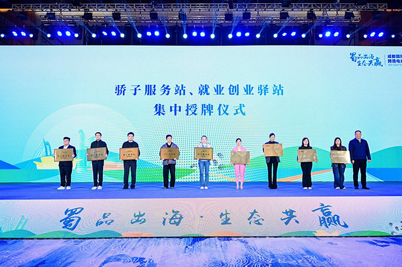 活动现场举行了骄子服务站、就业创业驿站集中授牌仪式,标志着四川中实跨境电商产业园骄子服务站、金石科创合作产业园骄子服务站、蝌蚪创业孵化基地等9个商贸商务领域“一站式”人才服务站点正式投用,为商贸人才提供政策申报指导、人才孵化培养、市场供需匹配等专业化服务。