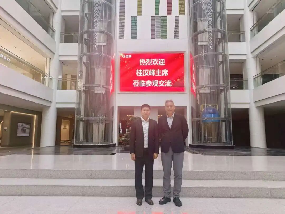 2026年4月4日,成都市政协委员、锦江区政协常委、全球经济发展合作促进会主席桂汉峰赴厦门,实地参访上市公司金牌家居(股票代码:603180)总部,与金牌家居总裁潘孝贞举行座谈,双方围绕企业全球化战略、智能制造升级、产业链协同发展等核心议题深入交流,共谋中国制造出海发展新路径。